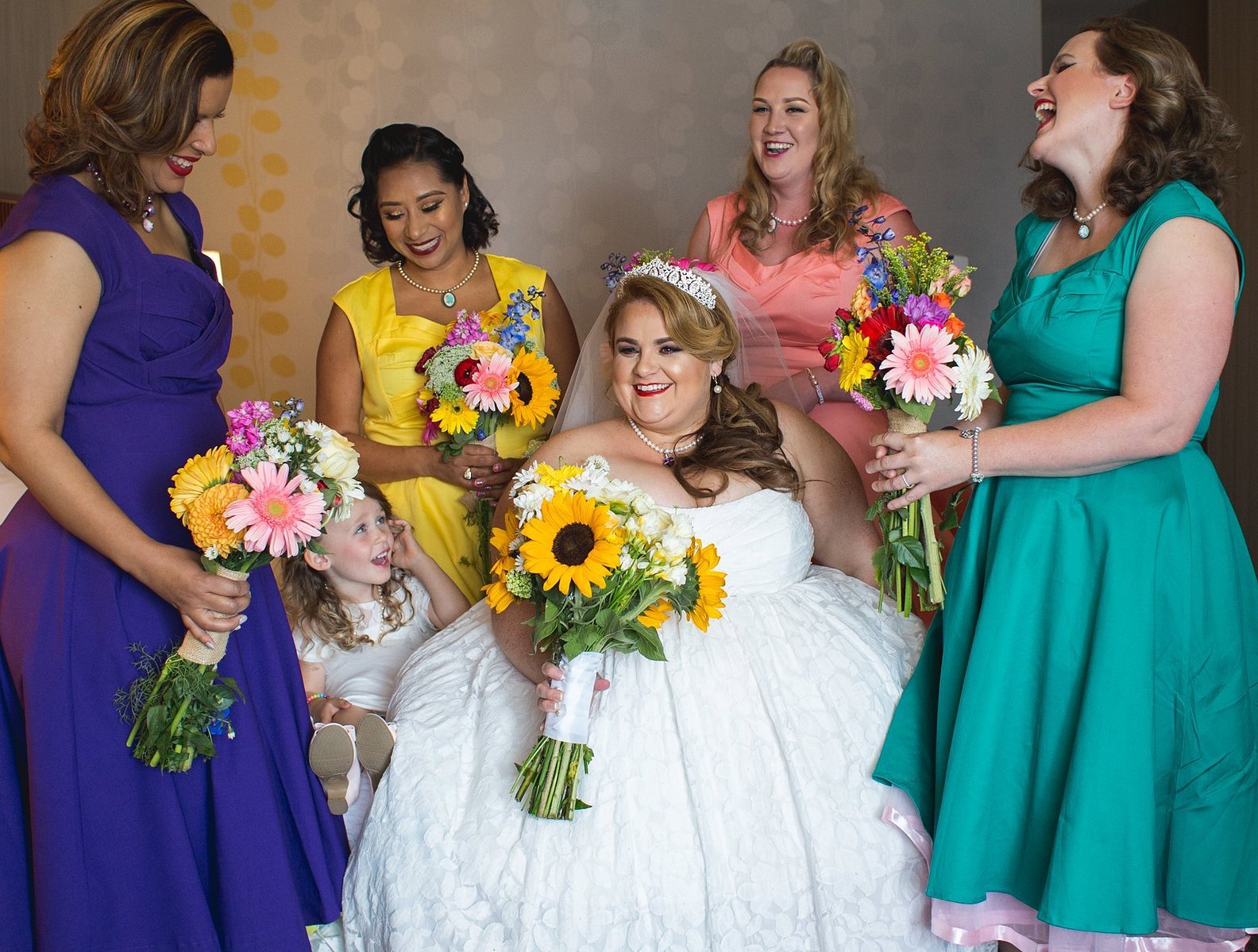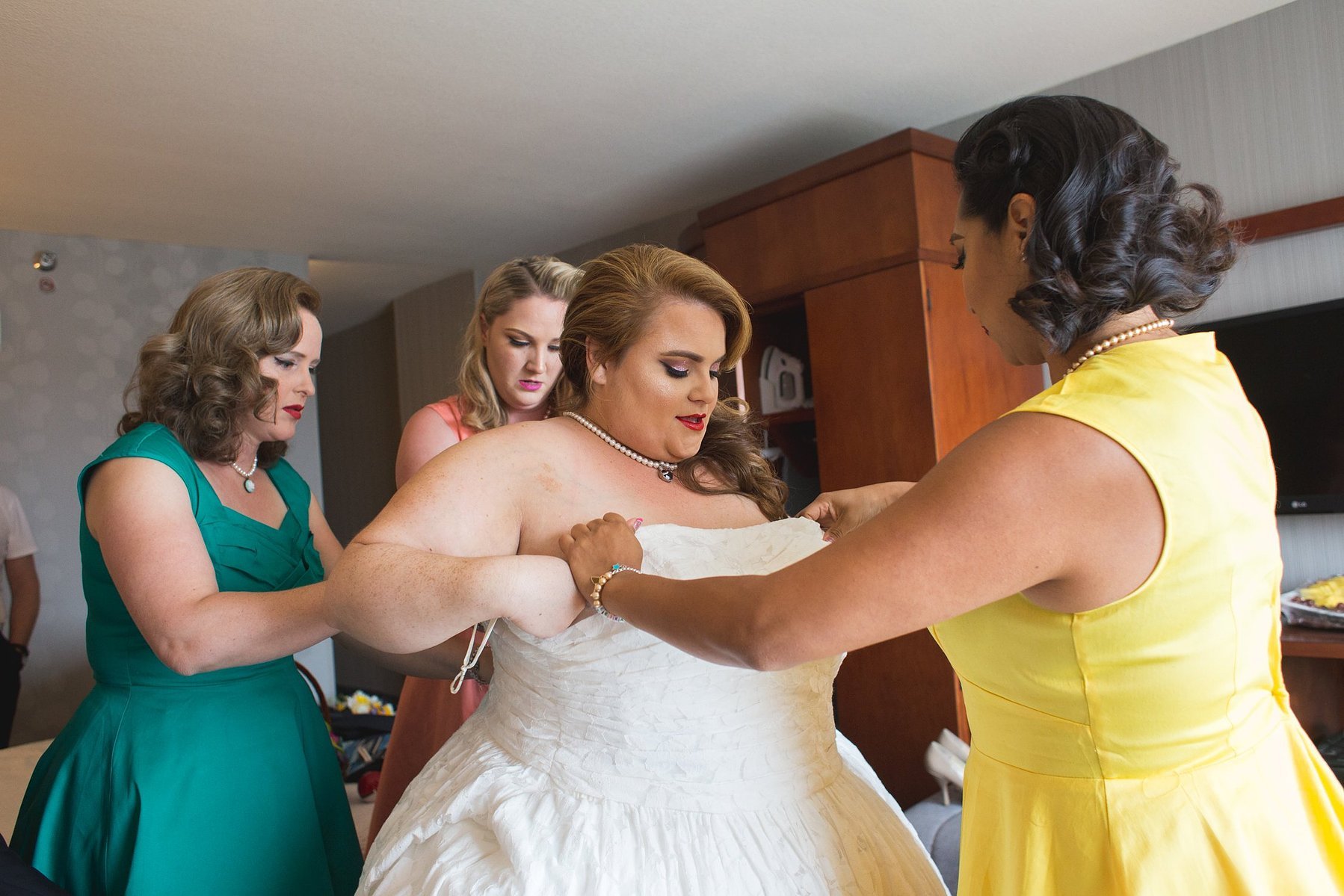 Their wedding style was very creative true to self.  James aka “Spidey” had his groomsmen wear boutonnieres with superhero figurines on them, and Minnie’s girls were all dolled up in 50s style and had bright dresses in different colors.  I could go on and on about how cool it all was but I think I’ll just show you 🙂