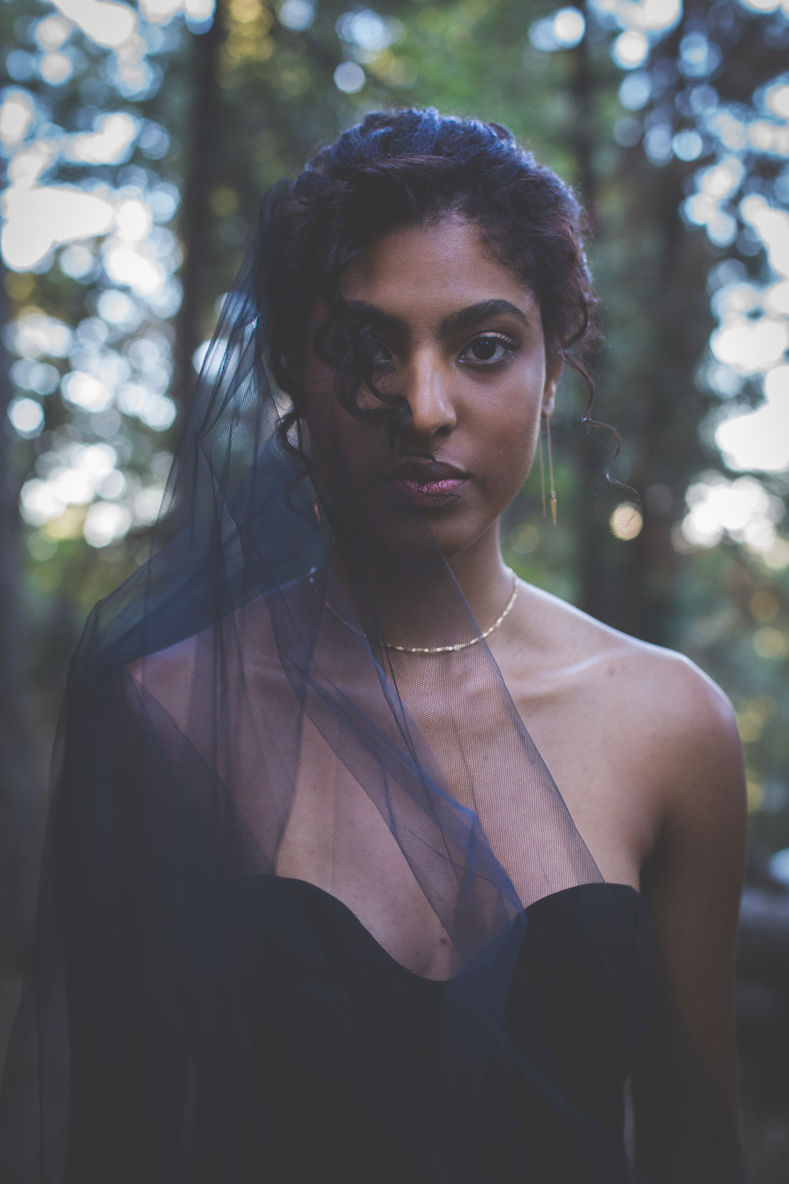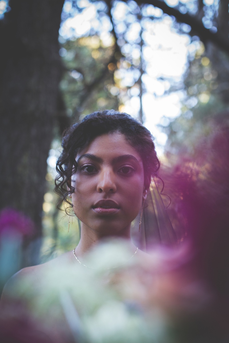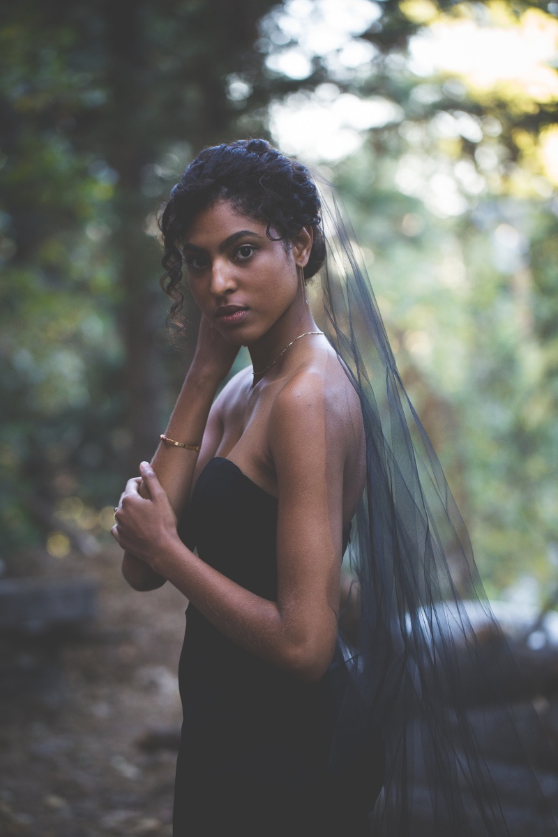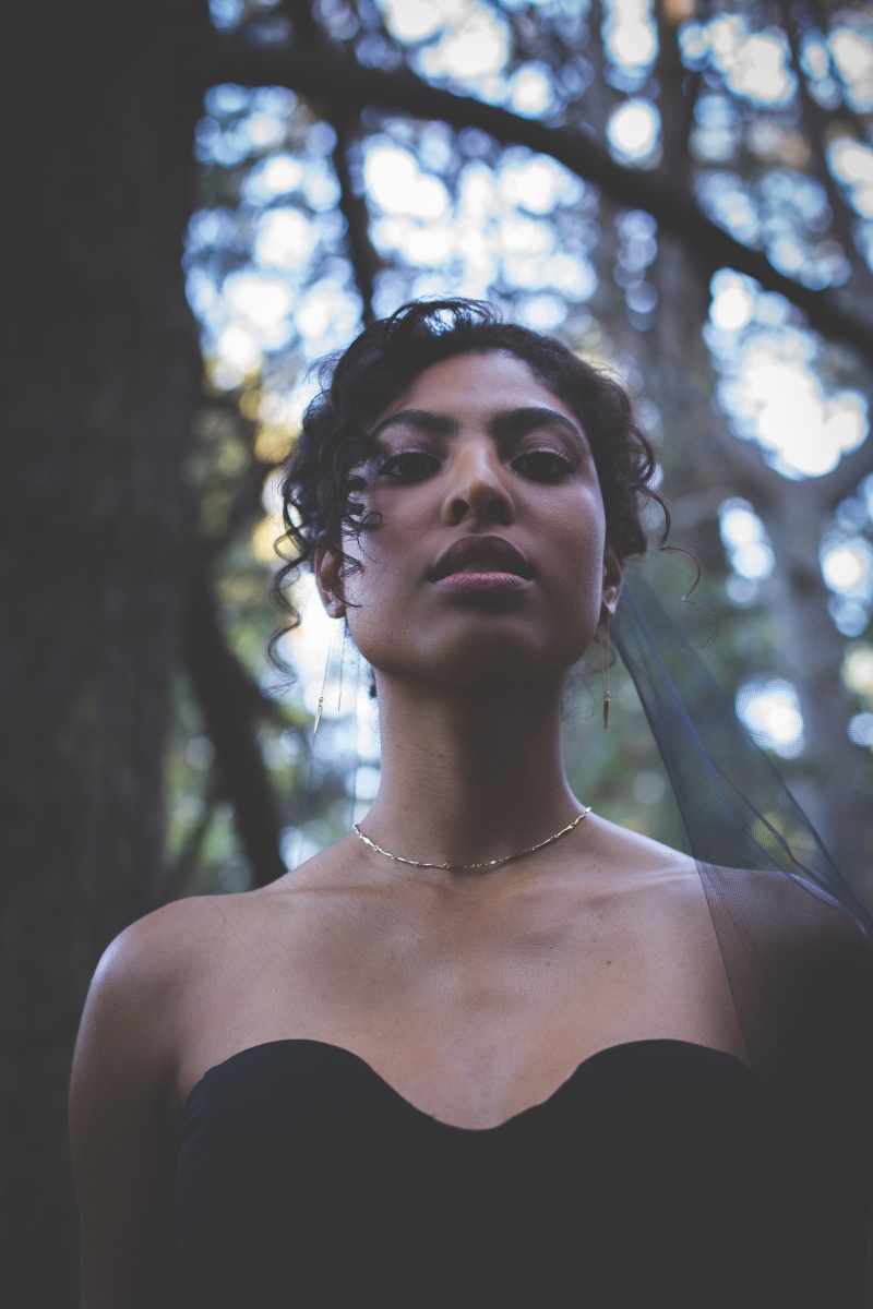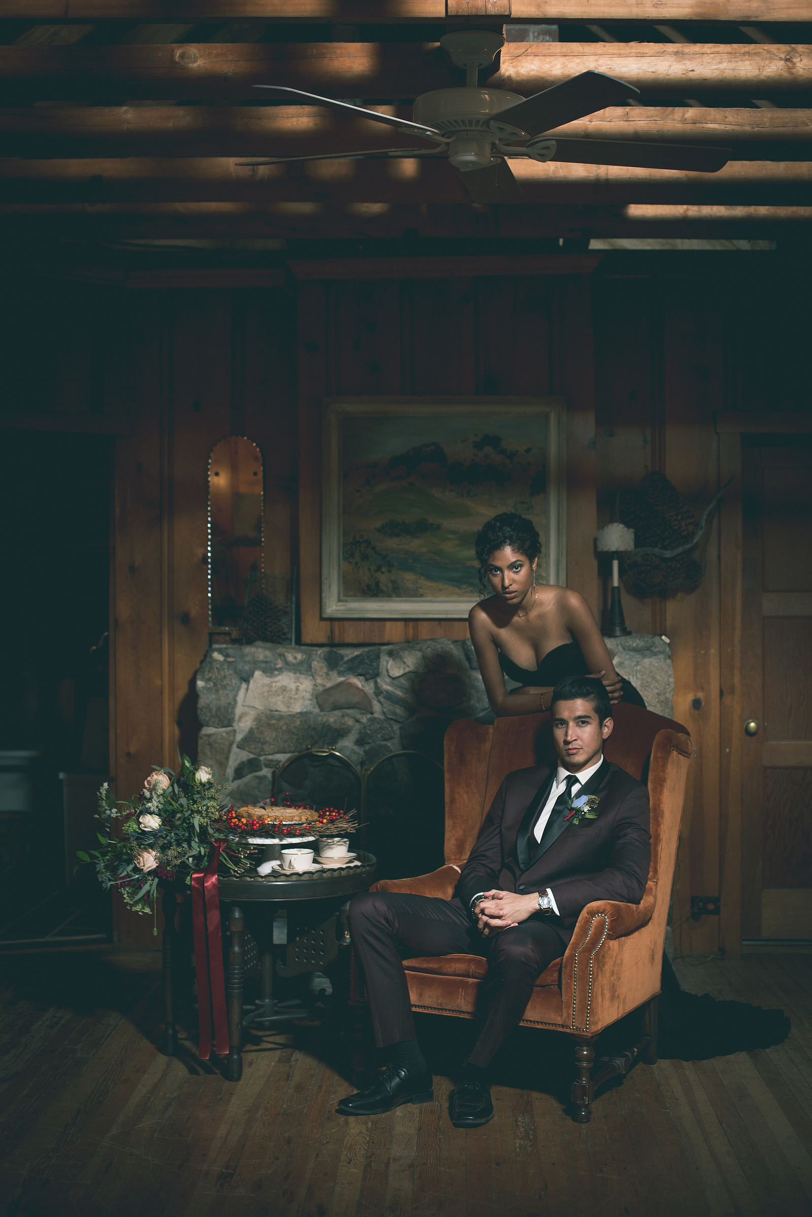 We came to a cabin surrounded by pines, with a dozen donuts and a vision inspired by the films and shows of David Lynch. In his stories, you begin to realize that the woods are deep with secrets. We wanted to evoke the sophistication, darkness, mystery, and a hint of silliness that David Lynch does in his work. When I look at this gallery I see secret messages being told through dark brown eyes and kept by the trees. We left feeling like we woke into a dream.