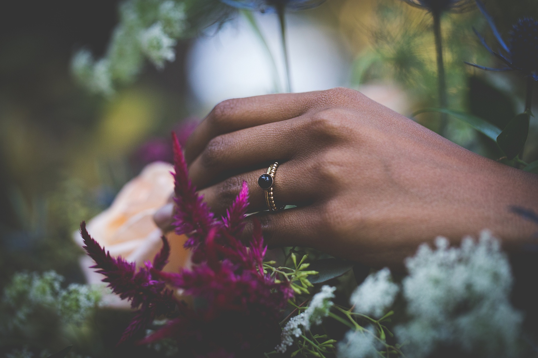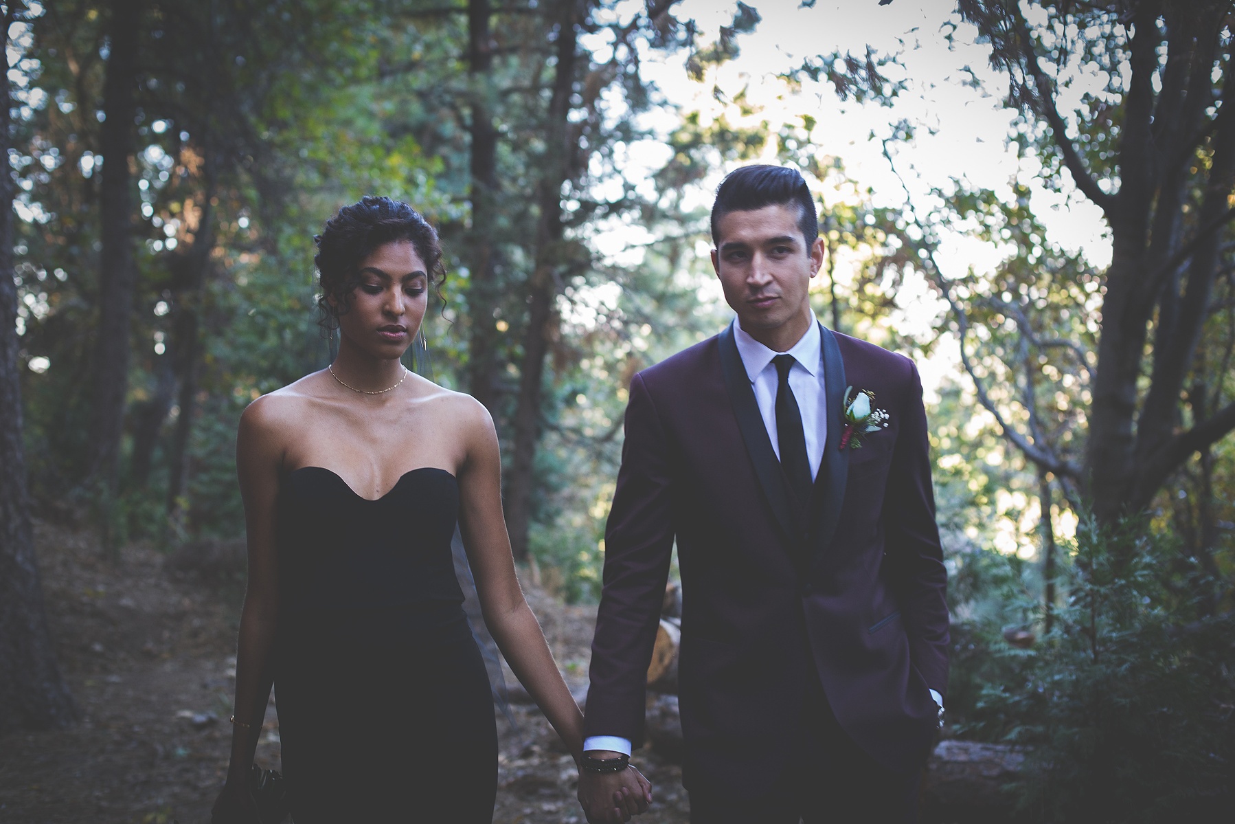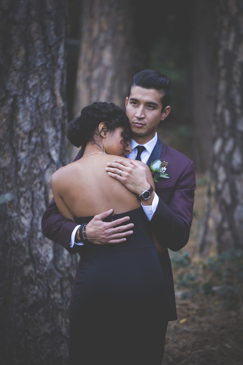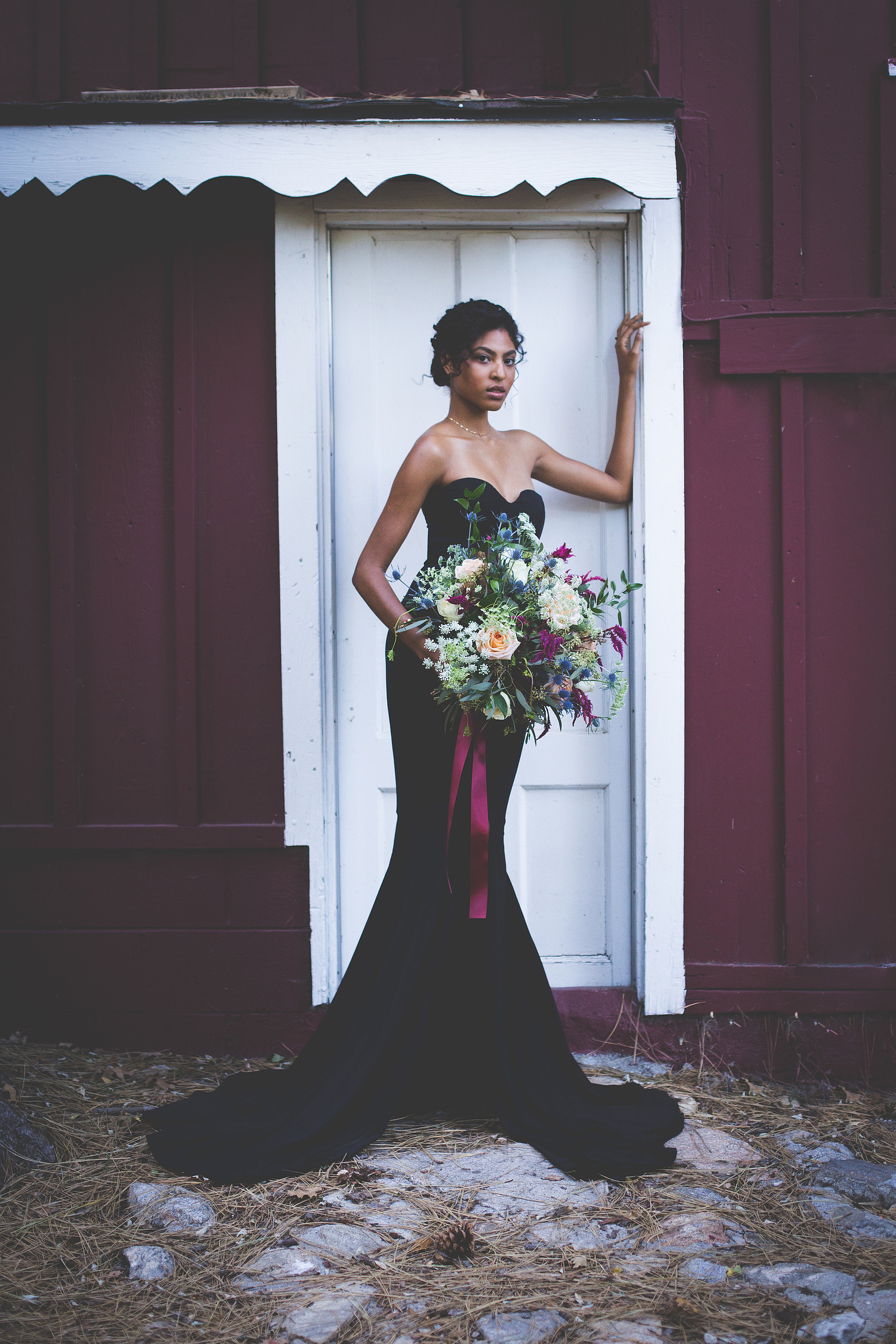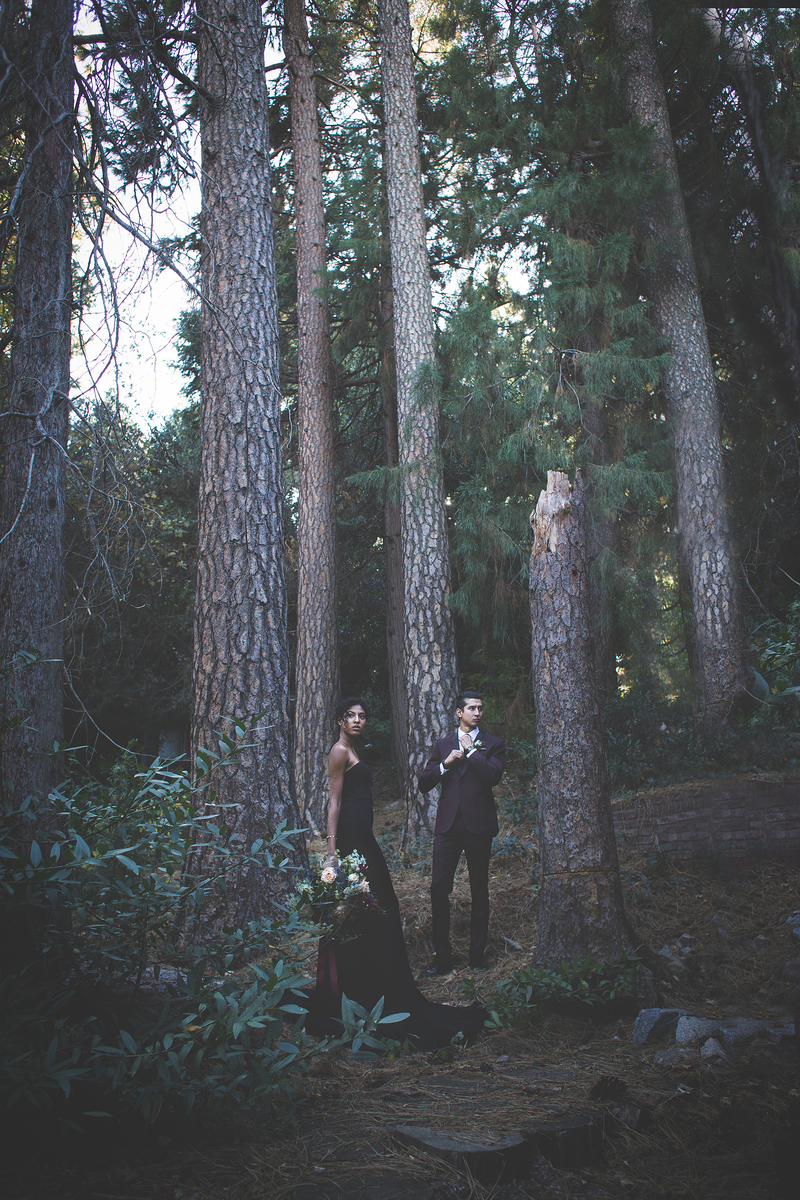 We came to a cabin surrounded by pines, with a dozen donuts and a vision inspired by the films and shows of David Lynch. In his stories, you begin to realize that the woods are deep with secrets. We wanted to evoke the sophistication, darkness, mystery, and a hint of silliness that David Lynch does in his work. When I look at this gallery I see secret messages being told through dark brown eyes and kept by the trees. We left feeling like we woke into a dream.